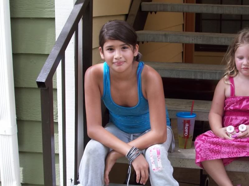 As far as the family goes this morning the girl Antonio has been glued to since Thursday or Friday went back home to Mississippi. Her name is Judy and she is the sweetest little girl and she has the thickest country accent I have heard in a long time. He really adored her. Every morning Antonio would go straight to the back porch to see if she was outside on her balcony or if she was out walking her dogs and if she wasn't then he just waited for her and soon enough she would come out looking for him too. On Friday I had some errands to run so I left Antonio home with Max and the whole time I was gone he sat on the porch with her sitting on the other side just talking to her since he wasn't allowed to leave the apartment while I wasn't home. I wrote down our phone numbers and address for her and printed off some pictures for her of them playing so Antonio could give them to her last night. When he tried she rejected them saying she doesn't write letters and she can't take the pictures. He was heartbroken. So after sitting on the back porch staring up at her balcony after being rejected for a while he got up the nerve and went and knocked on her door and gave it to one of the adults she was staying with and asked them to give it to her. He told me they said they would but I'm not so sure they did. Hopefully she got it and she writes him. I know that would make him so happy.